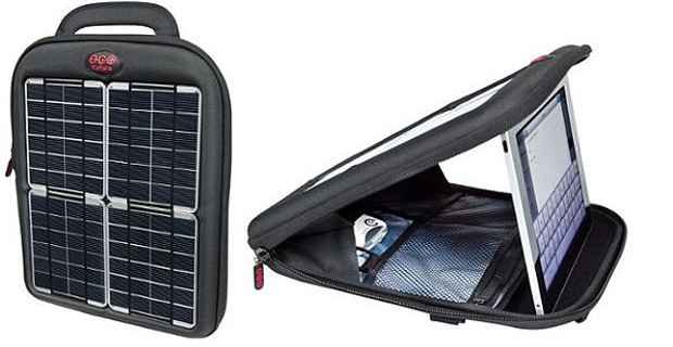 São mochilas e cases, com um sistema gerador de energia solar. São quatro painéis fotovoltaicos, que são acoplados na parte externa dos produtos. Dez horas de incidência solar direta podem carregar um iPad completamente.